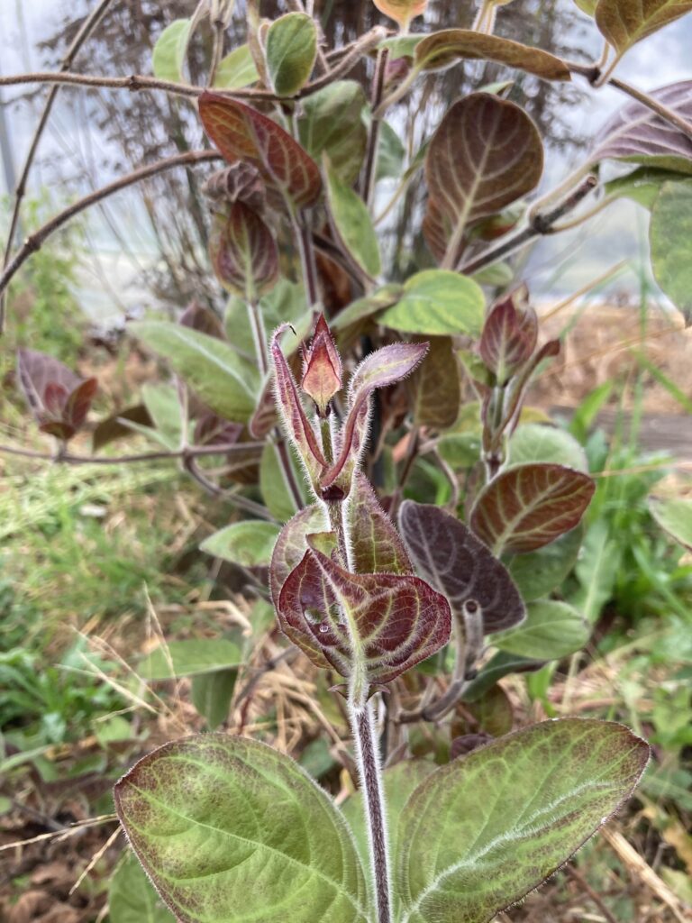 Port : Plante grimpante aux jolies feuilles duveteuses couleur rouille et verte